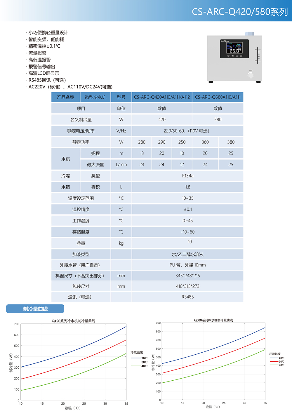 微型實驗室高精度冷水機Q420/Q580產品特性: