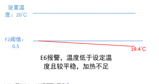 冷水機(jī)所處現(xiàn)象:當(dāng)前水溫一直低于設(shè)定溫度 - F2 閾值(觀察 2 分鐘),且溫度較為平穩(wěn)。